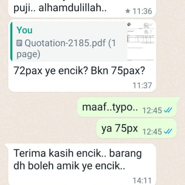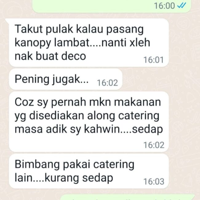 Cuma isi detail ringkas ni, team kami akan hubungi anda untuk confirm menu & harga.