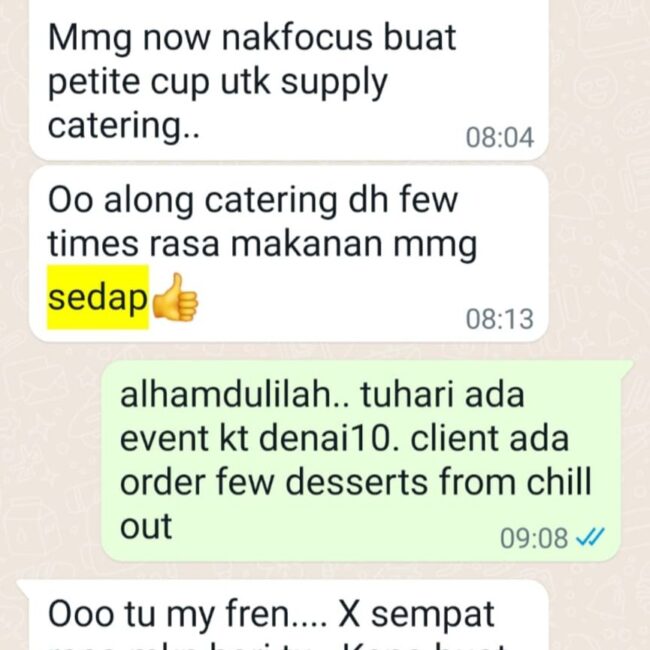 Masakan kami bermula dari asas dan sentiasa disediakan segar sebelum majlis anda. Kami percaya kunci kejayaan adalah untuk tidak pernah berpuas hati dengan tahap biasa-biasa, sebaliknya menjadi peneraju dan pilihan utama pelanggan dalam perniagaan makanan serta katering di seluruh negara.