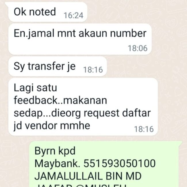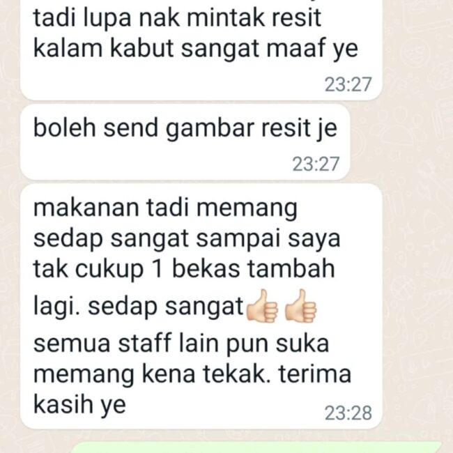 EXCELLENT Based on 8 reviews NURUL HANA FAEZAH BINTI AZHA BINTI AZHARI2023-03-13Trustindex verifies that the original source of the review is Google. Fast response, the packed nasi ayam is good, good communication and delivery based on schedule. Highly recommended. ahmad firdaus2019-10-24Trustindex verifies that the original source of the review is Google. Good service Laila Omar2019-10-07Trustindex verifies that the original source of the review is Google. Good service JESUA 042019-03-09Trustindex verifies that the original source of the review is Google. Good shop